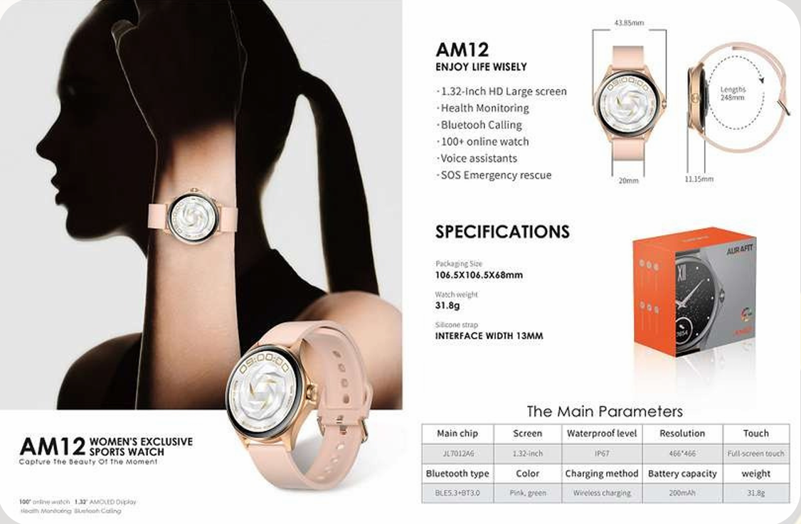 Descubra o Relógio Smartwatch Feminino Aurafit ELLA1 AMOLED, a combinação perfeita de elegância e funcionalidade. Este smartwatch foi projetado especialmente para mulheres que buscam um acessório que complemente seu estilo de vida ativo e moderno.